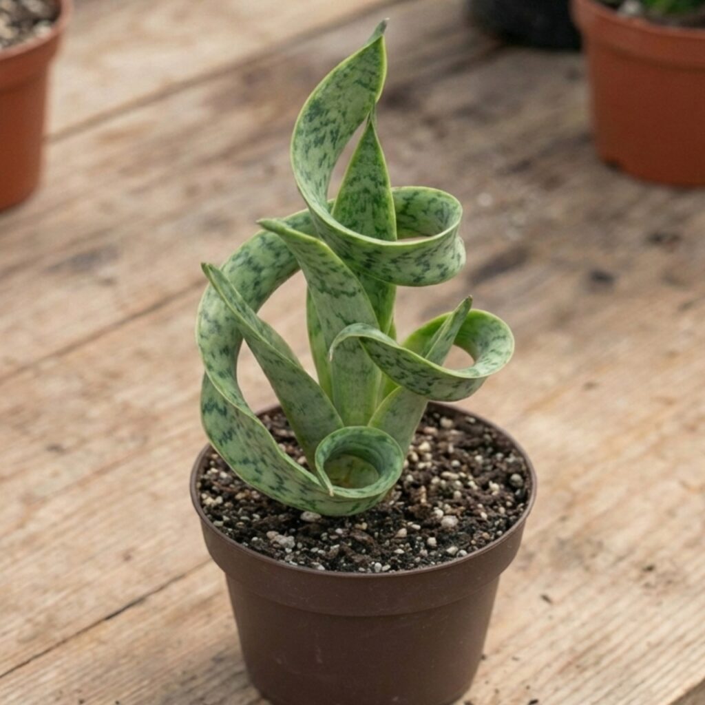 Let’s be clear—snake plants don’t naturally grow in a spiral.